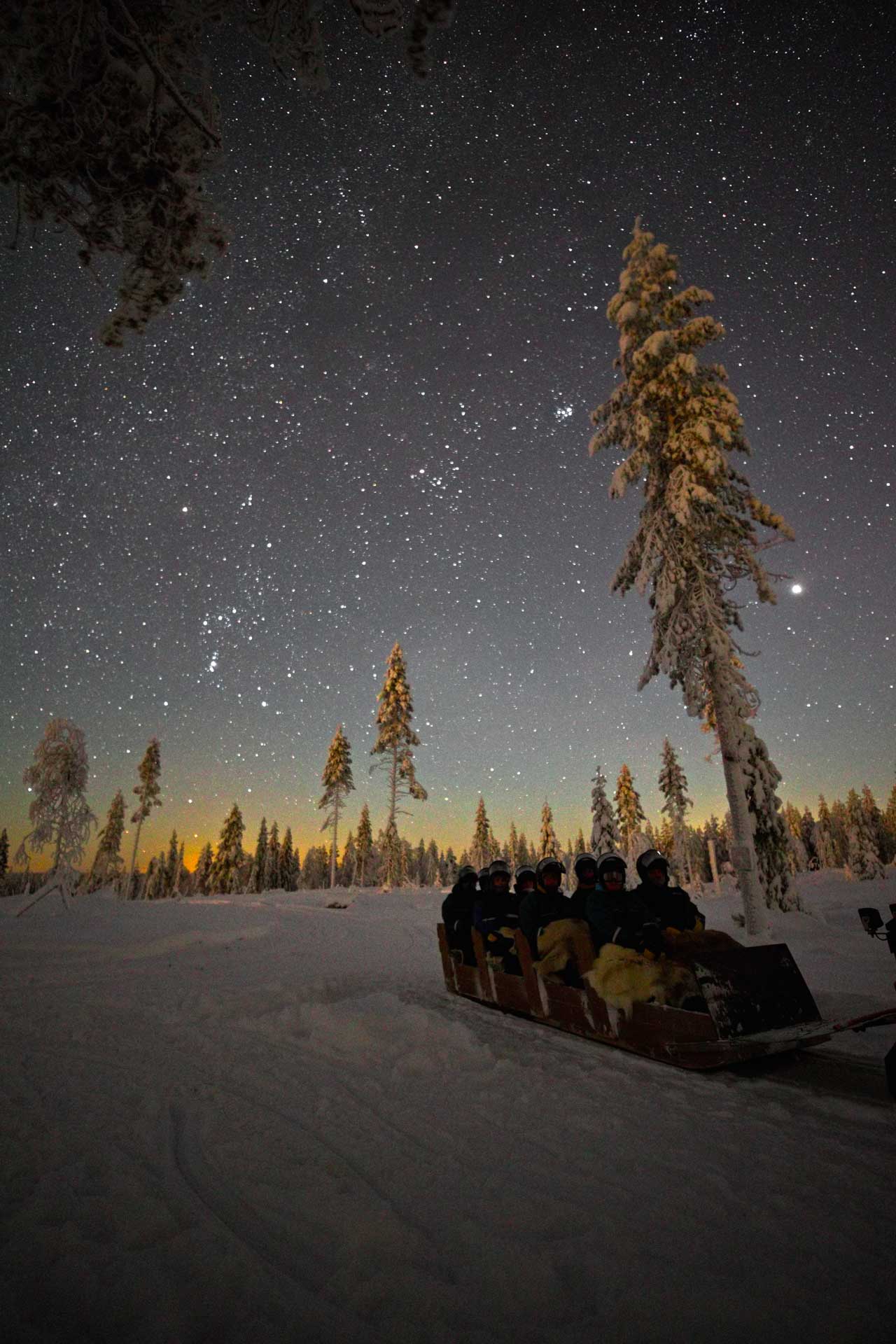 If you want, it is available to take a snowmobile + sledge transfer to the high place, Muovaara. There you can see the whole Northern Sky.