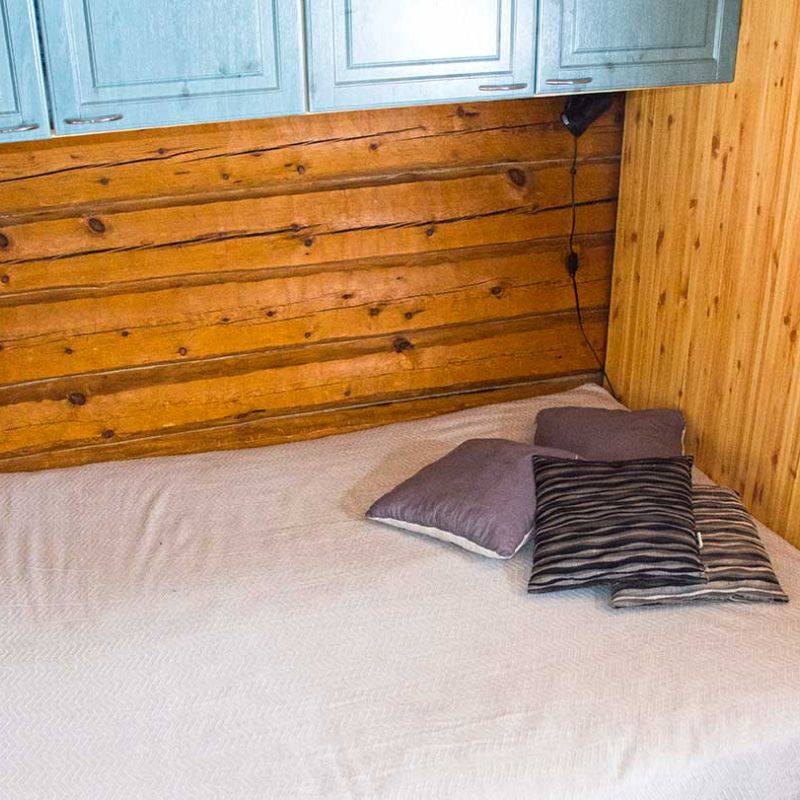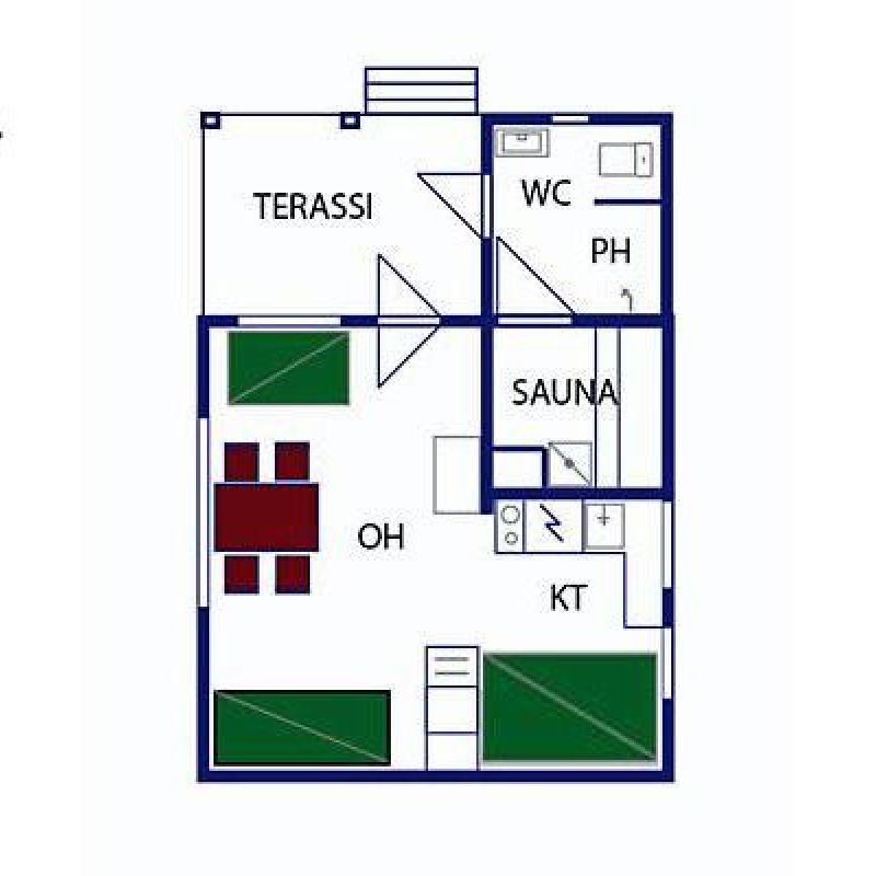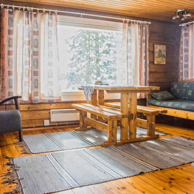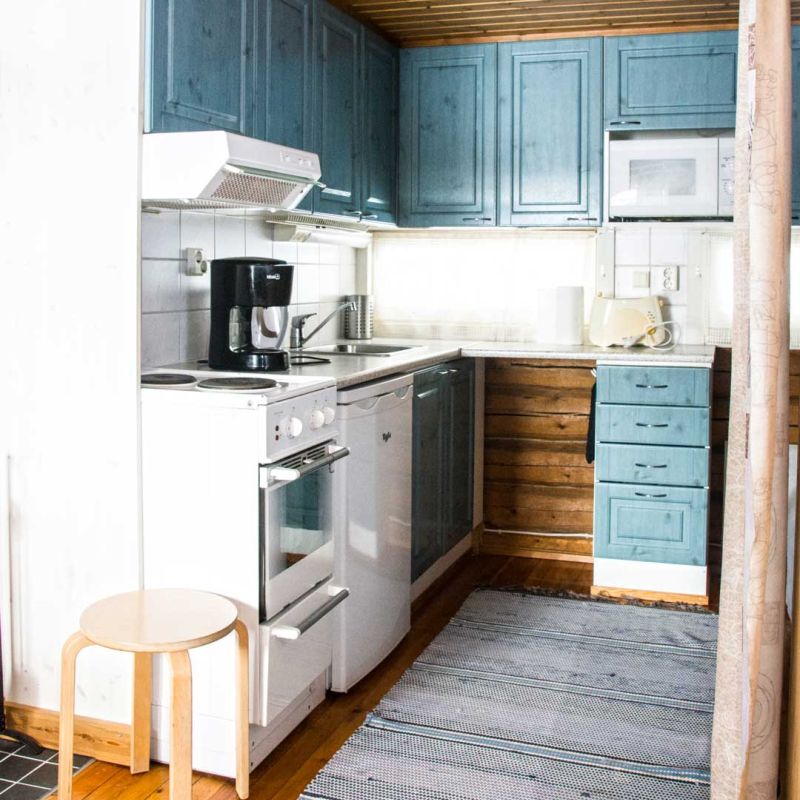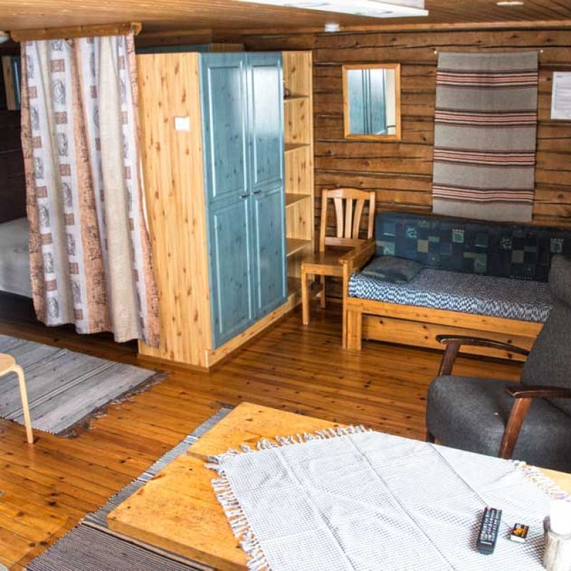 45 m2 mökissä on yksi makuualkovi ja vuodepaikat 3 henkilölle sekä 3 lisävuodepaikkaa. Mökissä on puulämmitteinen sauna ja suihku sekä WC.