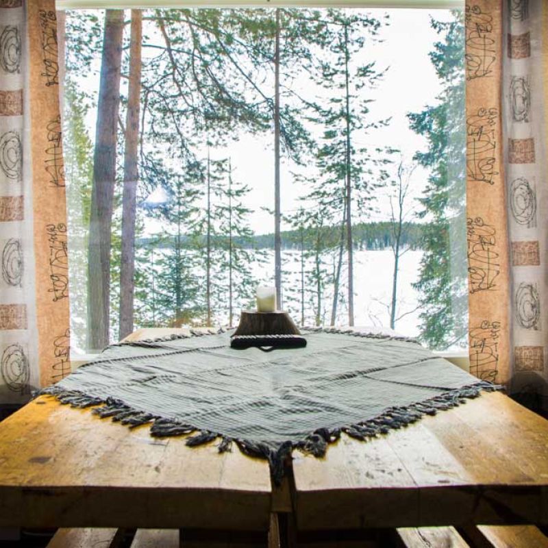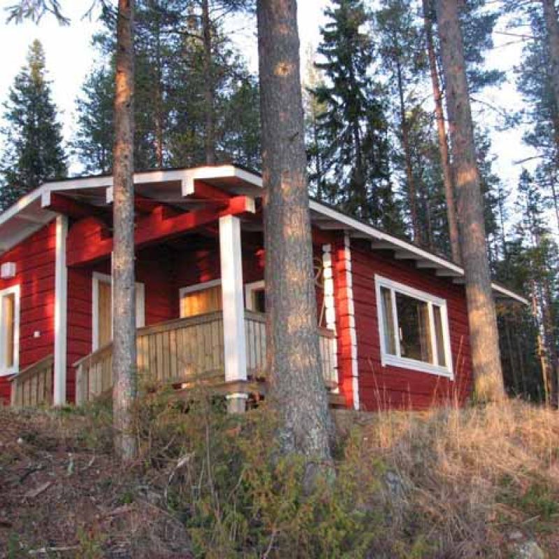 Upealla, aurinkoisella paikalla, eteläänpäin avautuvalla rannalla sijaitseva tunnelmallinen 3+3 hengen hirsimökki.