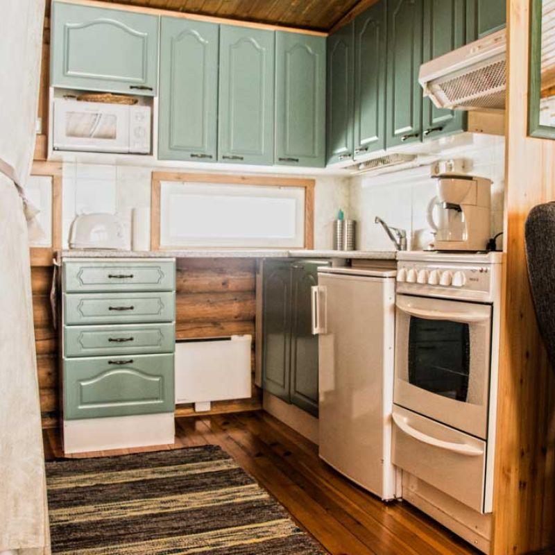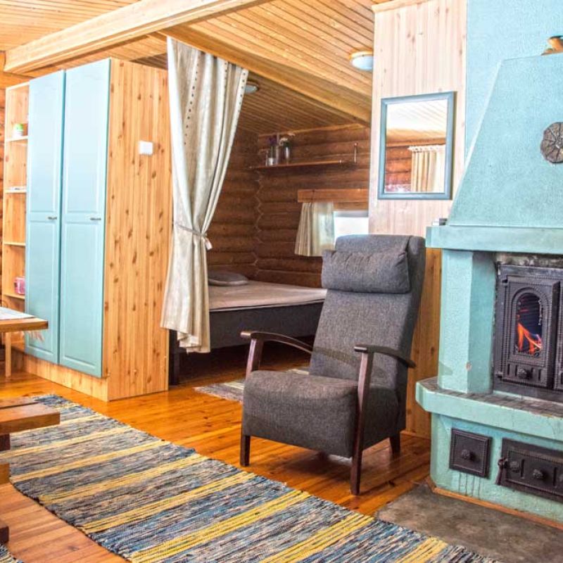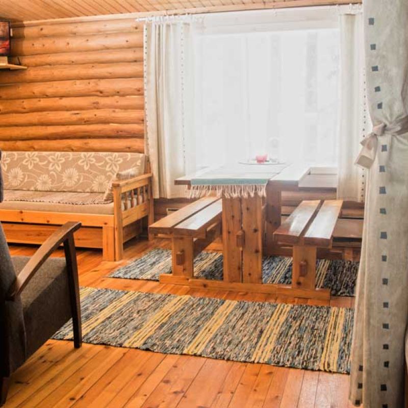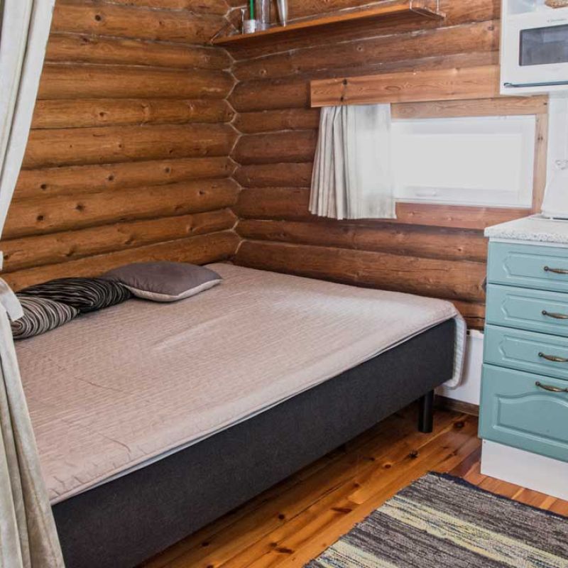 45 m2 mökissä on vuodepaikat 3 henkilölle sekä 3 lisävuodepaikkaa. Mökissä on puulämmitteinen sauna ja suihku sekä WC.